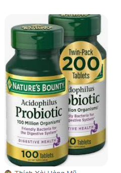 - 100 viên Nature’s Bounty Acidophilus Probiotic 100 Million Organisms – Hỗ trợ tiêu hóa, men tiêu hóa