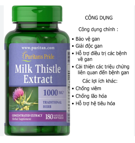 Puritan’s Pride Milk Thistle Extract 1000mg 180 viên – Hỗ trợ giải độc gan Mỹ